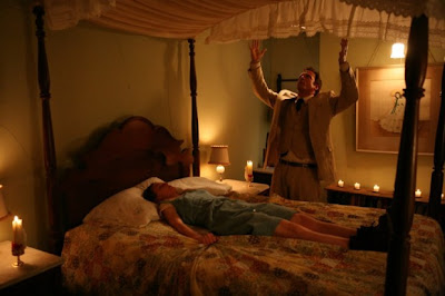Falando nos envolvidos, os atores estão bons e acho que são eles que não permitem o filme afundar de vez. Embora Nell Sweetzer, personagem vivida por Ashley Bell, não surpreenda no início, até que sua atuação enquanto possuída rende muito suspense e temor, principalmente na parte onde ela toma posse da câmera. Mas as partes boas do filme são logo esquecidas quando surge o enorme clichê do quarto pintado de sangue com pentagramas e o típico "666" de filmes de terror de segunda mão. Podia ter ficado sem essa.
